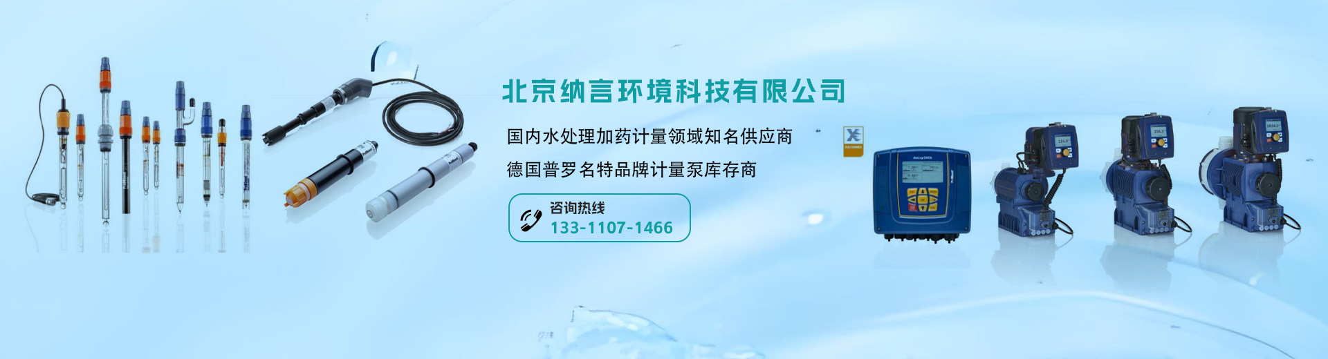 伴随着多年的稳健发展,以代理销售普罗名特产品为主的北京纳言环境科技有限公司服务领域几乎涵盖了所有的水质处理工艺,包括流体计量及输送设备、水质监测设备、水处理消毒设备、粉体溶解设备及相关的配套设施。